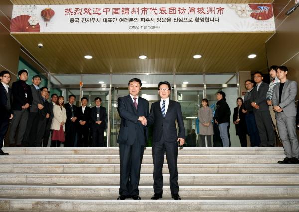 중국 진저우시는 랴오닝성 서부의 교통 요충지에 위치한 인구 3백만 도시로 1995년 파주시와 자매결연 체결 이래 문화, 경제, 청소년 어학연수 등 다양한 분야에서 교류를 해 오고 있는 파주시 최초 해외 자매도시이다. 내년에는 양도시가 자매결연을 맺은 지 25주년이 되는 해이다.