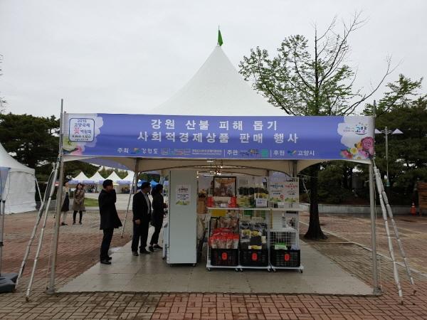 그 첫 단계로, 고양시는 50만 명 관광객이 찾는 국내 최대 화훼박람회인 고양국제꽃박람회장 내에 판매장을 마련한다. 꽃박람회 기간은 26일부터 내달 12일까지 총 17일간으로, 호수공원 한복판 ‘명당자리’에 5개 부스를 설치해 산불로 피해를 입은 속초·고성 57개 사회적기업의 제품을 판매한다. 수익금의 일부는 강원지역 이재민 등에 기부할 예정이다.