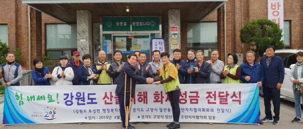 고양시 일산동구 주민자치협의회는 지난 25일 강원도 고성 토성면을 방문해 대규모 산불로 피해를 입은 이재민을 돕기 위한 성금 300여만 원을 전달했다.
