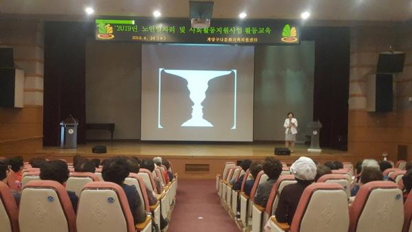 인천 계양구 다문화가족지원센터는 지난 24일, 2019년 노인사회활동지원사업의 성과를 극대화하고 참여 어르신의 삶의 질 향상을 위한 노인일자리사업참여자 100명을 대상으로 교육을 실시했다.