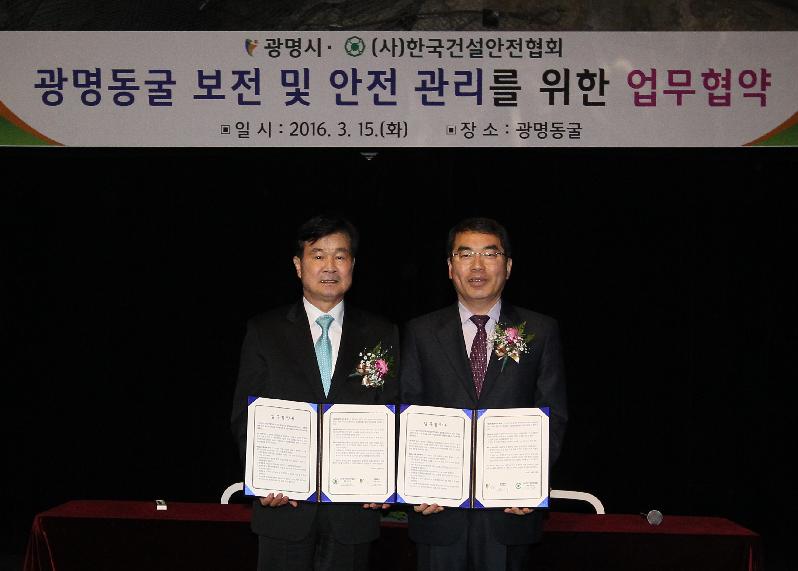 광명시(시장 양기대)는 15일 한국건설안전협회와 업무협약을 체결하고 광명동굴의 안전한 운영과 개발을 통해 광명동굴의 관광 활성화를 도모해 나가기로 했다.