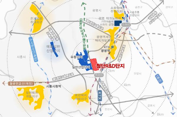이 중 도시첨단산업단지는 경기도시공사가 4,536억 원의 사업비를 투입해 광명시 가학동, 시흥시 논곡동 일원 49만4천㎡ 부지에 조성하는 산업단지다. 2022년 조성완료를 목표로 하고 있으며 제조업 고도화를 위한 지식기반 서비스업와 첨단 제조업 등 미래형 유망산업은 물론 기계, 자동차 부품 등 지역 기반산업 등이 유치 대상이다.