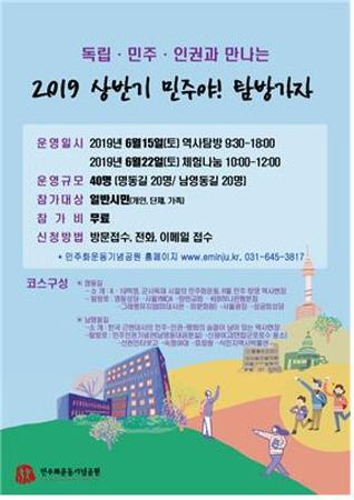 이 프로그램은 오는 6월 15일에 서울 명동과 남영동 일대에서 전문해설사의 안내로 역사탐방을 진행하고, 6월 22일에는 민주화운동기념관에서 전시관람과 체험나눔 워크샵으로 진행된다.