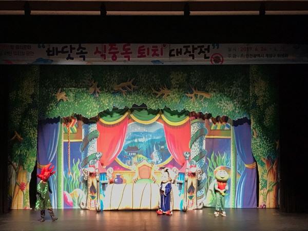 인천 계양구는 지난 24일부터 25일까지 4회에 걸쳐 계양문화회에서 관내 어린이집과 유치원 6~7세 아동 및 인성발달과 성장에 중요한 역할을 하는 학부모가 참관할 수 있는 올바른 식생활·식습관 교육을 위한 인형극 “바닷속 식중독 퇴치 대작전”을 공연했다.