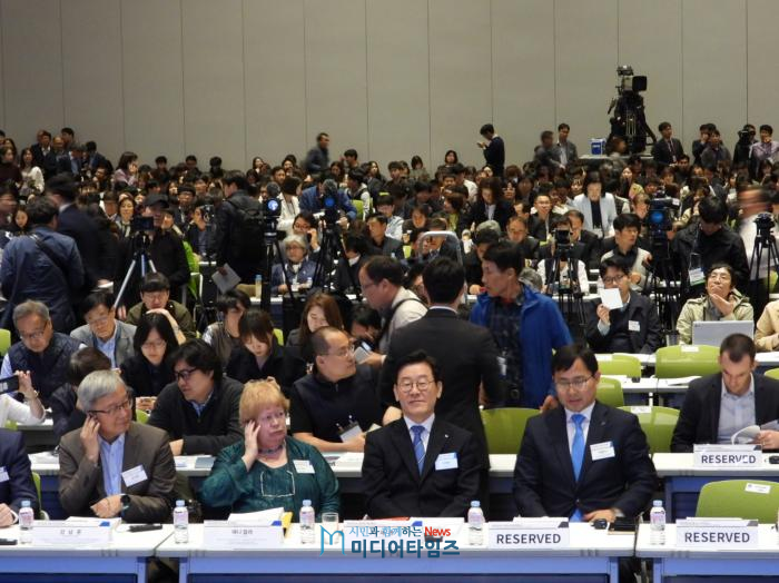 29일 오후 1시30분부터 수원컨벤션센터 3층 컨벤션홀에서 진행된 국제컨퍼런스는 이재명 경기도지사의 연설로 시작됐다.
