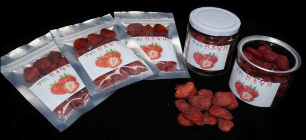 이 같은 상황에 따라 개발한 이번 건딸기 제조법은 세척·헹굼 냉동 해동 당·산 첨가 열풍 건조 등의 순으로 진행한다.