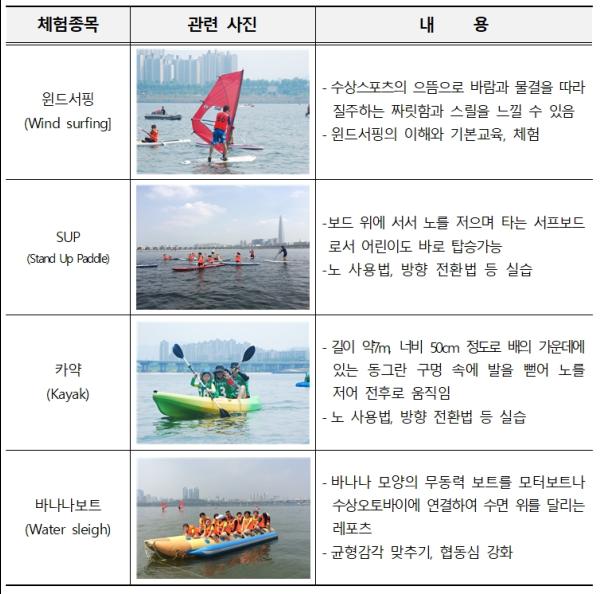 6월 1일부터 매주 주말 한강에서 가족이 함께하는 수상스포츠 체험교실 운영