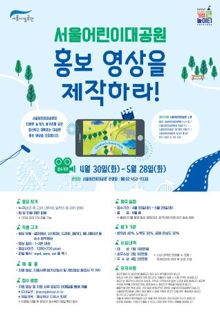 서울시와 서울시설공단은 30일부터 오는 5월 28일까지 ‘2019 서울어린이대공원 홍보영상 공모전’을 개최해 시민들의 참신한 영상작품을 공모한다고 30일 밝혔다.