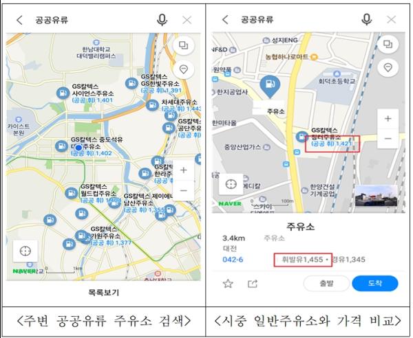 공공협약주유소 할인가격과 시중주유소의 판매가격을 함께 제공해 한눈에 가격비교가 가능하다.