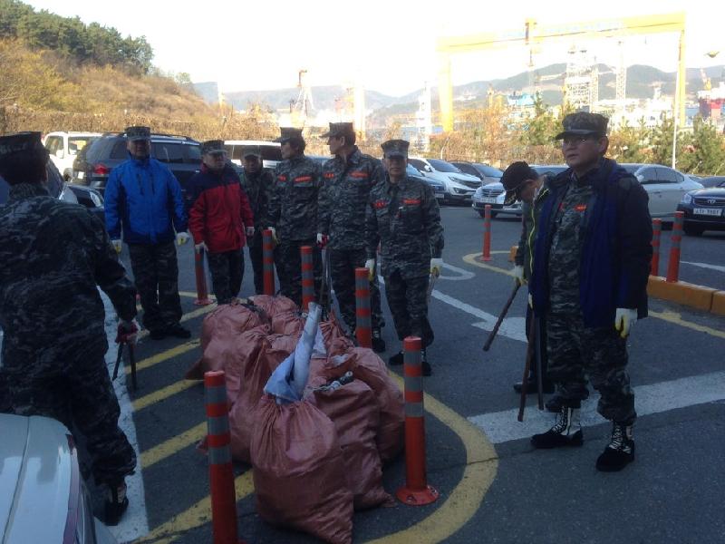이번 활동에는 해병전우회 능포·장승포 회원 12명이 참여, 느태 고개에서 대우조선입구까지의 쓰레기를 수거했다.