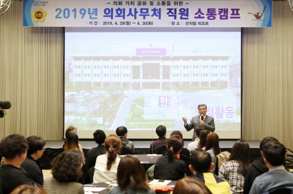 송한준 의장은 지난 29일부터 30일까지 1박2일 간 경기도 광주 곤지암리조트에서 ‘2019년 의회사무처 직원 소통캠프’를 개최하고, 6급 이하 직원 100여 명과 소통의 시간을 가졌다.