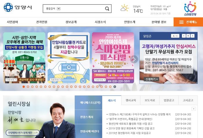 실생활에 필요한 관내 업체 및 기관, 단체 정보들을 신속․정확하게 제공하고자 콘텐츠로 구축해 시 홈페이지 메뉴 「안양에는」에서 서비스 중이다.
