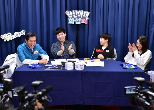 특히 안산아재화섭TV의 주인공인 윤화섭 안산시장이 중반부에 특별 출연해 두 선수를 격려하고, 이번 경기도체육대회에 출전하는 안산시 선수들과 즉석 전화연결을 통해 결과에 연연하지 말고 스포츠 정신으로 최선을 다해달라고 응원했다.