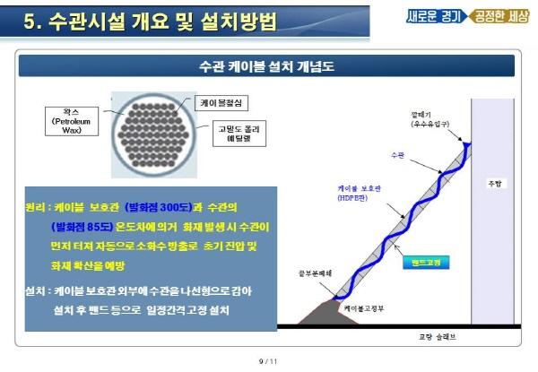 김 주무관은 “화재 조사를 위해 현장에 출동했는데 케이블에 불이 났을 경우에 대비한 대비책이 필요하다는 생각을 하게 됐다”면서 “케이블에 수관을 설치하면 언제든지 화재를 진압할 수 있겠다 싶어 방법을 연구했다”고 배경을 설명했다.