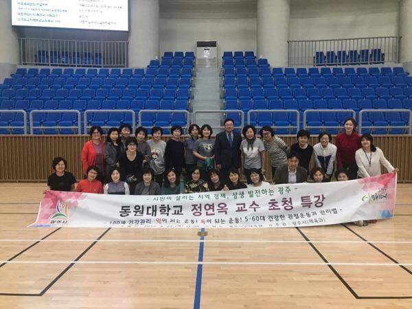 광주시는 지난달 25일 광주시민체육관에서 동원대학교 정연옥 평생교육원장을 초청해 ‘100세 건강관리 약이 되는 운동 독이 되는 운동 50∼60대 건강한 관절운동과 관리법’ 특강을 개최했다.