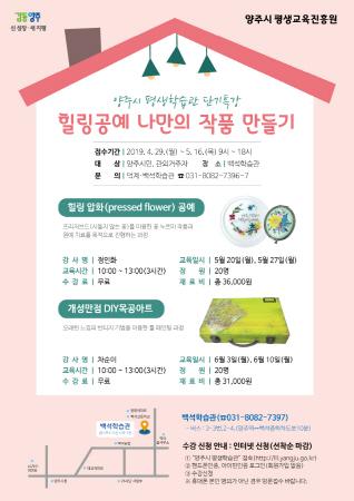 양주시 평생학습관은 5월 가정의 달을 맞아 단기특강 ‘힐링 공예 나만의 작품 만들기’를 운영한다.