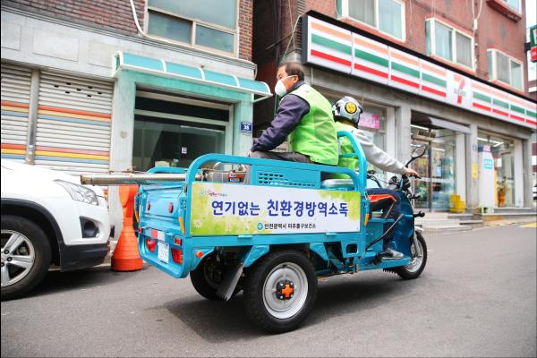 인천 미추홀구가 친환경 삼륜전기차를 활용한 방역활동을 시작했다.