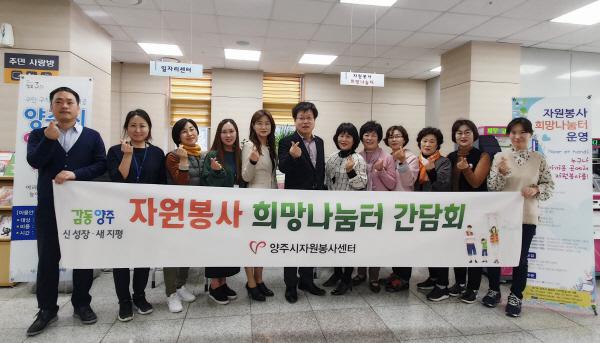 양주시자원봉사센터는 시민들에게 생활권 내에서 자원봉사에 관한 원스톱 서비스를 제공하고자 백석읍, 은현면, 양주2동, 회천2동 행정복지센터를 거점으로 자원봉사 상담창구인 ‘자원봉사 희망나눔터’를 운영하고 있다.