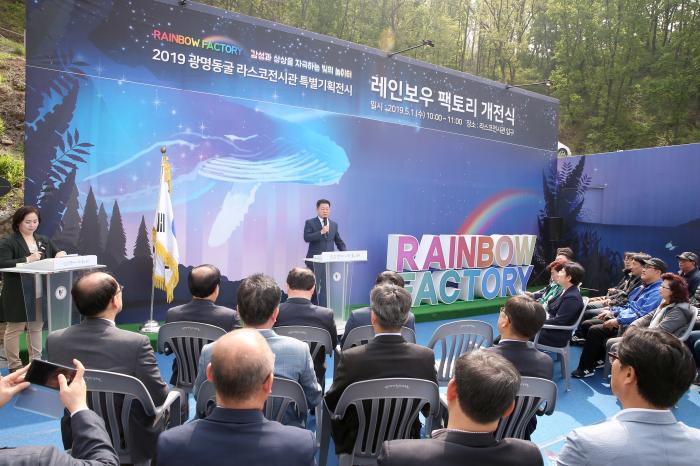 광명시(시장 박승원)는 1일 광명동굴 라스코전시관에서 2019년 특별기획전시인 감성과 상상을 자극하는 빛의 놀이터 ‘레인보우 팩토리’ 개전식을 개최했다.