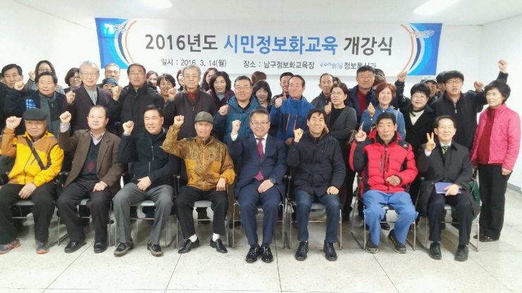 포항시가 지난 14일 남구 시민정보화교육장에서 ‘2016년 시민정보화교육 개강식’을 가졌다. 개강식에는 정보화교육강사 및 수강생 90여명이 참석하했으며, 교육정원 외의 청강생들도 다수 참가해 배움에 대한 열기로 가득 찼다. 특히, 고령의 수강생 박 모 씨(75세)는 “이번 달에 스마트폰교육을 수강해 스마트폰을 자유자재로 활용하는 방법을 익하고, 다른 정보화교육도 수강할 계획”이라고 말했다. 시민정보화교육은 이달부터 11월까지 9개월간 남․북구 정보화교육장 및 읍면동 정보화교육장 13개소에서 매달 수강신청을 받아 무료로 진행된다. 3월 남․북구 정보화교육장에서 개강되는 강좌는 엑셀, 한글, 스마트폰&소셜미디어, 파워포인트, 컴퓨터왕초보, 파워블로그&UCC 등 6개 프로그램에 220여명이 접수해 4월 1일까지 3주간 운영될 예정이다. 이점식 자치행정국장은 “시민정보화교육이 주민들의 정보격차가 해소와 지역경제 활성화에 기여할 수 있기를 바란다”며 “포항시가 지식정보화시대를 선도할 수 있도록 다양한 교육 프로그램 제공에 더욱 노력하겠다”고 말했다.