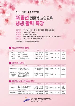 안산시 평생학습원은 오는 13일부터 31일까지 40대 이상 신중년을 위한 인문학·소양교육 ‘신인생 활력 특강’ 수강생을 모집한다.