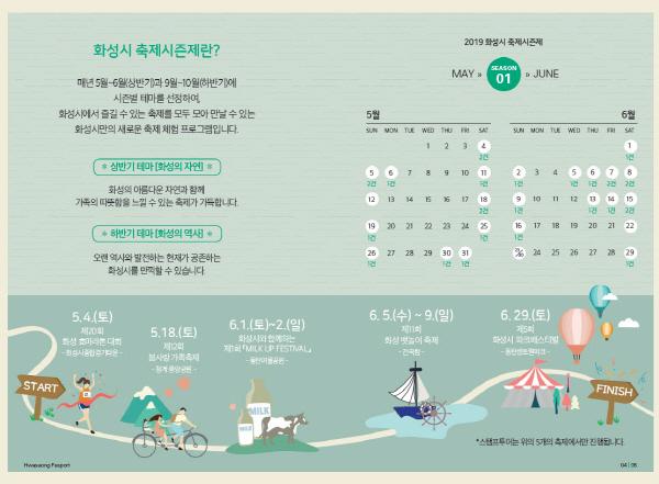 이에 시범적으로 오는 4일 화성시종합경기타운에서 개최되는 ‘제20회 화성 효 마라톤 대회’부터 18일 봄 사랑 가족축제, 6월 1일부터 2일 MILK UP 페스티벌, 5일부터 9일 화성 뱃놀이 축제, 29일 파크 페스티벌까지 총 5개 대표 축제를 한 시즌으로 엮었다.