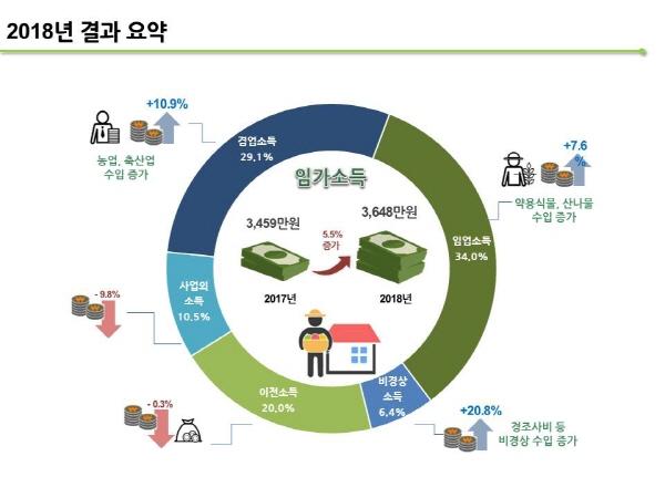 전년 대비 임업소득 7.6%, 임업외소득 4.5% 등이 증가했다.