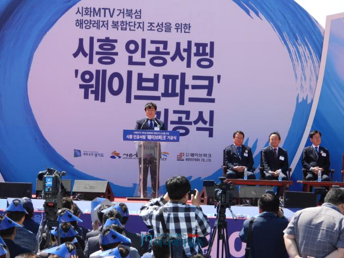 임병택 시흥시장, 이재명 경기도지사, 이학수 한국수자원공사 사장, 최삼섭 대원플러스그룹 회장은 2일 오후 시흥시 정왕동 소재 시화 엠티브이(MTV)에 위치한 거북섬에서 시흥 인공서핑 웨이브파크 기공식을 공동으로 개최했다. 이날 기공식에는 문성혁 해양수산부장관, 조정식 국회의원 등 500여명이 참석하여 공사 시작을 축하했다.