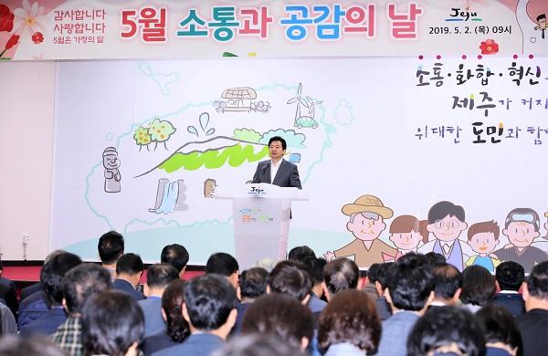 원희룡 지사는 2일 오전 제주도청 탐라홀에서 개최된 ‘5월 소통과 공감의 날’에 참석, 5월 주요현안에 대해 공직자들의 적극적인 자세를 당부했다.