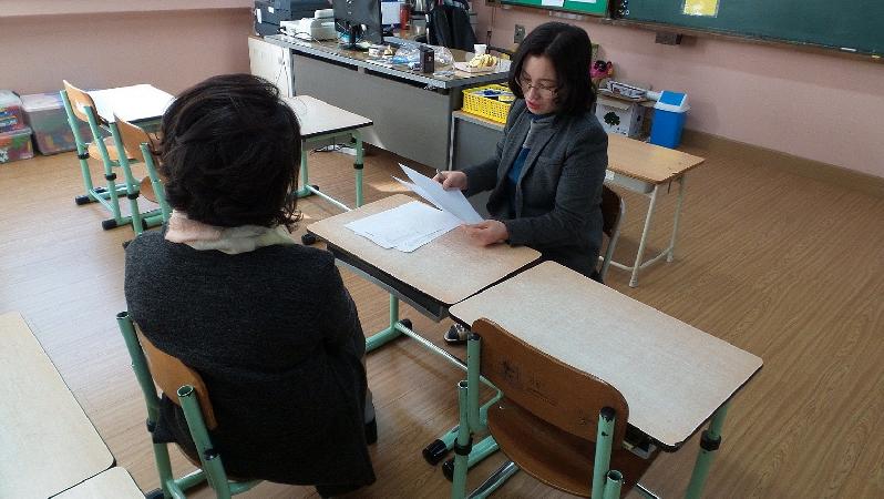 2016년 3월 14일(월요일)부터 3월 25일 2주간의 기간을 정하여 미리 가정 통신문을 발송하고 학부모와의 상담 시간과 내용을 사전에 협의하여 많은 학부모에게 상담 기회를 제공하였으며 각 교실이나 타 장소를 활용하여 학부모의 적극적인 참여를 이끌고 있다. 또 맞벌이 부모님들이나 시간을 내기 어려운 경우를 위해 탄력적 시간 운영과 면담이 어려운 학부모는 전화, 문자등 다양한 방법으로 학부모께 다가가 소통하고 있다. 학부모들도 학기초 학교생활 적응 및 교우관계 형성에 많은 도움이 되리라 믿으며 학교와 학부모간의 원활한 소통으로 상호 신뢰감이 형성될것이라고 기대하고 있다.// 김희철 기자 khc4236@hanmail.net