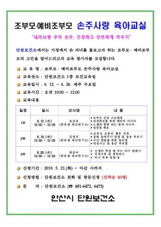 안산시 단원보건소는 예비조부모 및 조부모를 위한 ‘조부모 육아교실’을 오는 6월 12일부터 26일까지 총 3회 진행한다.