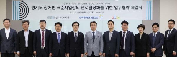 코리아경기도주식회사는 지난 2일 오전 판교 스타트업캠퍼스에서 한국장애인고용공단, ㈜이베이코리아와 함께 도내 장애인 표준사업장을 위한 ‘온라인·모바일 판로확대 및 홍보 지원 MOU’를 체결했다.