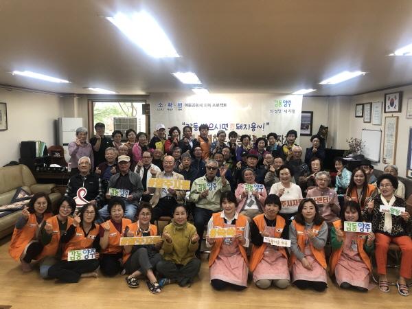 이날 경로잔치에 참여한 양주2동 희망나눔터 코치와 자이4단지 행복아파트 봉사단은 50여명의 어르신들에게 푸짐하게 준비한 돼지고기 수육과 소고기뭇국, 잡채 등으로 점심을 대접했다.