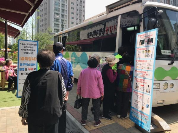 하남시보건소는 3일 결핵 조기발견 및 확산방지를 위해 미사강변종합사회복지관과 하남시장애인복지관에서 대한결핵협회 이동검진 차량을 이용한 흉부 엑스선 검진을 실시했다.