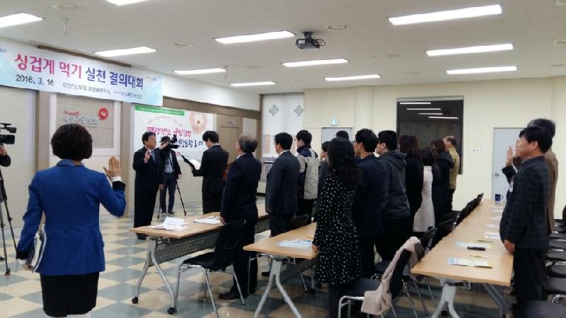 포항시 북구보건소는 국민건강보험공단 포항북부지사와 함께 16일 지사 회의실에서 나트륨 줄이기 결의대회를 가졌다. 이날 행사에서는 포항시가 지정한 나트륨 줄이기 실천주간(3.14~3.18)을 맞아 국민건강보험공단 북부지사 임직원 50여명의 싱겁게먹기 실천 결의문 낭독에 이어 북구보건소 싱겁게먹기 범시민 운동의 사례발표가 진행됐다. 또, 참석자를 대상으로 한 싱겁게먹기 체험관도 열어 짠맛 미각테스트와 염도계 체험행사, 패널전시회 및 소금함량 음식모형 등도 전시했다. 한편 이날 국민건강보험공단 포항북부지사는 결의대회에 이어 죽도어시장에서 북구보건소와 시청 식품위생과, 북구청 위생과, 산업안전보건공단 경북동부지사, 포항시 외식업지부, 9988건강강사, 죽도시장 상가번영회 등 시민단체와 유관기관과 연계해 범시민 싱겁게먹기 릴레이 캠페인을 실시하기도 했다. // 심후보 기자 sky626201@naver.com