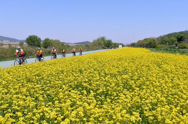 활짝 핀 유채꽃은 노란 물결로 장관을 이뤄 시민들의 발길이 이어지고 있다.