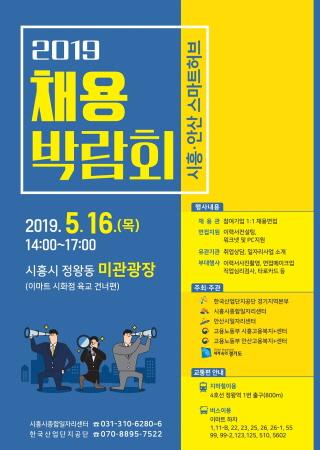 시흥시는 오는 16일 오후 2시부터 ‘2019 시흥·안산 스마트허브 채용박람회’를 정왕동 미관광장에서 개최한다.
