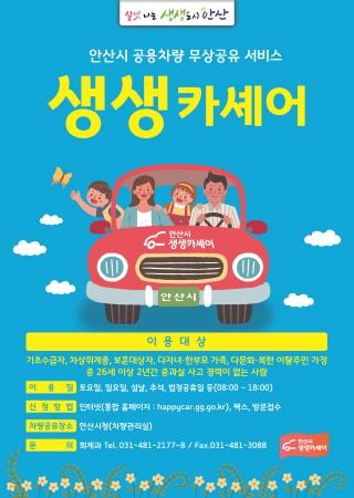 한편, 시 관계자는 “생생카셰어는 안산시가 전국 9번째로 시행하는 사업으로 시작은 승용 5대, 승합 3대 등 총 8대로 운영하지만, 수요증가 등 필요에 따라 점차 확대해 나가겠다”고 말했다.