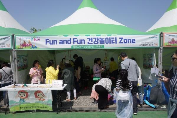 광주시 어린이급식관리지원센터는 지난 5일 어린이날을 맞아 곤지암도자공원 내 행사장에서 ‘Fun and Fun 건강놀이터 Zone’ 체험활동 부스를 운영했다.