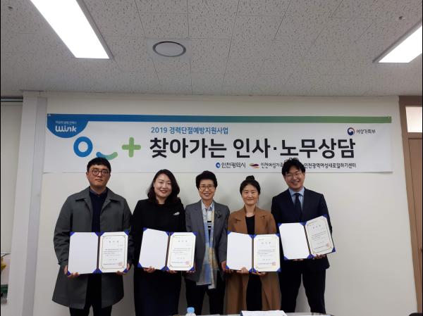 인천여성가족재단 대표이사 인천광역여성새로일하기센터장은 지난 4월 24일 인천여성가족재단 대표이사실에서 전문 공인노무사 5명과 ‘찾아가는 노무상담’위촉식을 진행했다.