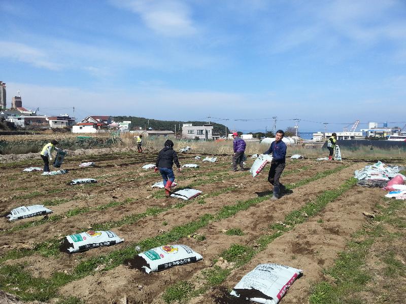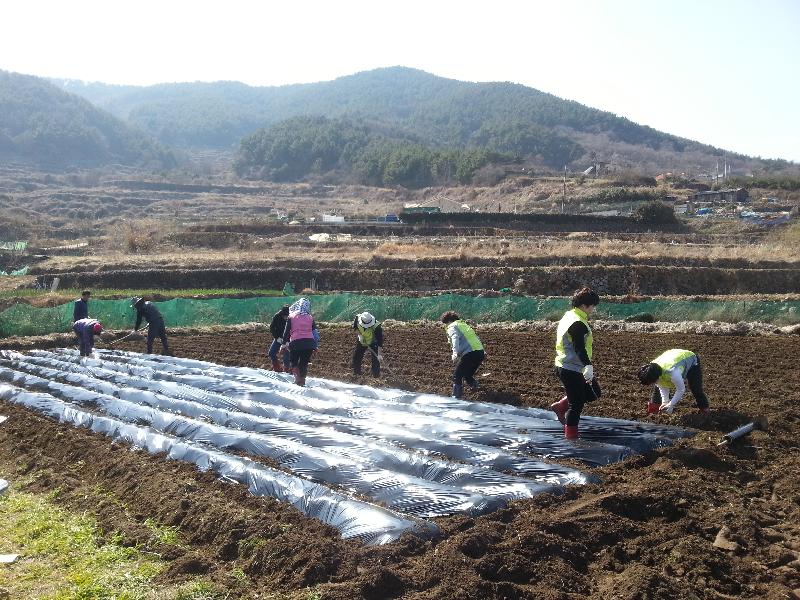 이날 작업은 작년에 이어 올해에도 퇴비·비료뿌리기, 밭 갈기, 비닐 씌우기 작업 후 감자심기에 한마음이 되어 구슬땀을 흘렸다.