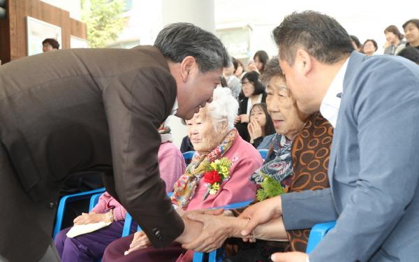 송한준 의장은 지난 4일 오전 경기도 광주 ‘나눔의 집’에서 열린 ‘효잔치’에 참석했다. 이날 행사에는 나눔의 집에서 생활하는 강일출 할머니, 이름과 나이가 같은 두 분의 이옥선 할머니 등 일본군 성노예 피해자 3분과 더불어민주당 소병훈·임종성 국회의원, 학생, 봉사자 등 300여 명이 함께 했다.