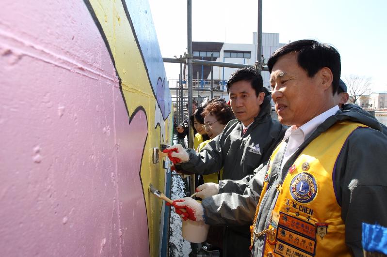삭막하고 칙칙했던 포항운하 송도교 벽면이 봄을 맞아 벽화작업을 통해 새 단장한다. 이번 벽화작업은 국제라이온스협회 경북(356-E)지구 회원들이 자발적으로 1,200만원의 모금액을 기부하고, 이달 초부터 재능기부자들과 함께 벽화그리기에 참여해 눈길을 끌었다. 이번 작업을 통해 송도교 양쪽 약 100m 운하 벽면에 포항을 상징하는 영일대, 보경사, 호미곶 상생의 손, 과메기, 대게, KTX역 등을 형상화한 벽화가 한 물결을 타듯 이어지게 그려질 계획이다. 벽화작업은 25일쯤 마무리될 예정으로, 특히 17일에는 이강덕 포항시장이 현장을 찾아 관계자들을 격려하고, 회원들과 함께 벽화그리기에 참여했다. 이강덕 포항시장은 “이번 벽화작업으로 크루즈를 이용하는 관광객들에게 다양한 볼거리를 제공할 뿐만 아니라 포항시의 역동적인 모습을 홍보하는 효과를 거둘 것으로 기대한다”고 말했다. 국제라이온스협회 경북(356-E)지구 천장우 총재는 “클린포항 만들기 일환으로 송도교 하단 벽면에 포항의 역동적인 상징물을 표현하는 벽화작업 봉사에 참여하게 되어 회원들도 무한한 기쁨과 보람을 느낀다”고 전했다. 한편 현재 포항운하 내 송림교 하단과 주변 주택담장에도 지난해 가을 벽화작업을 완료해 운하를 찾은 시민들과 관광객들에게 볼거리를 선사하고 있다.