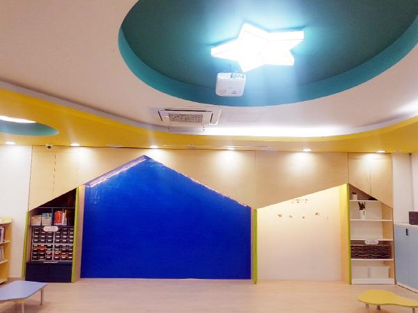 키즈룸에는 아이들의 상상력과 창의력 발달에 도움을 줄 수 있는 벽면 레고 판과 블록을 비롯해 문자나 숫자 등의 놀이를 통해 자연스럽게 언어나 수치와 친숙해질 수 있는 자석 보드와 모형, 그리고 어린이들이 보고 싶은 영화를 동네 도서관에서 영화관처럼 볼 수 있는 빔프로젝터 등을 설치해 공간의 활용도를 더욱 높혔다.