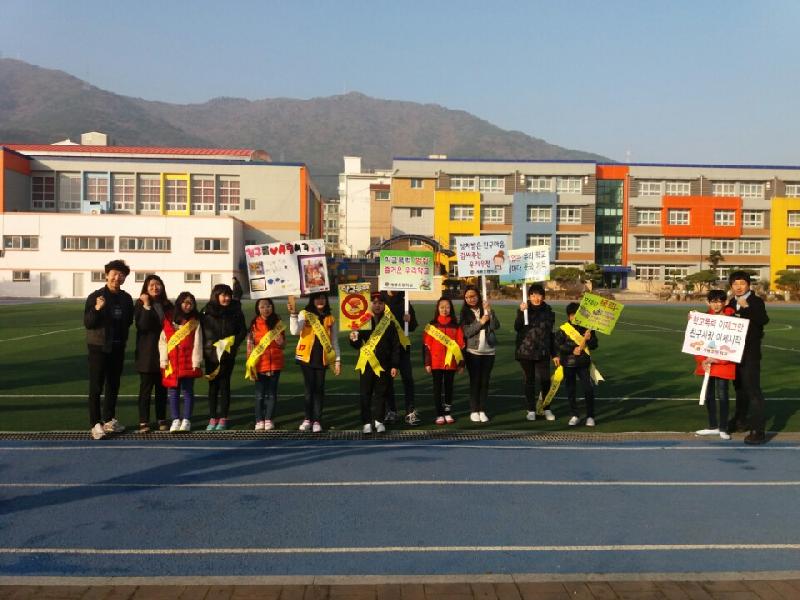 이날 행사에서는 학생과 교사가 한목소리로 ‘학교폭력 멈춰, 즐거운 우리학교’를 외치며 등교하는 학생들과 지역주민들에게 학교폭력의 심각성을 알리고 바람직한 학교 문화를 조성하는데 노력을 기울여 달라는 메시지를 전달했다.