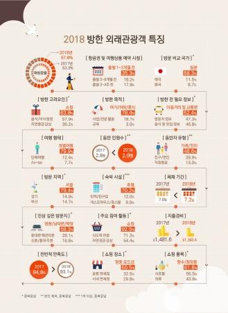 또한, 2018 외래관광객 실태조사 결과 재방문율, 방한 체재 기간, 지방 방문 비율이 증가세를 보여 질적으로도 개선되고 있는 것으로 분석됐다.