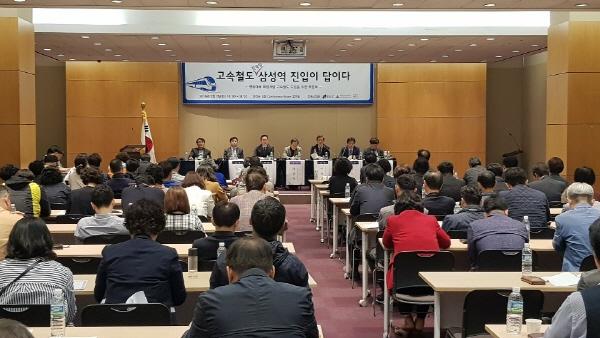 강남구와 대중교통포럼, CMC가 공동 주최한 이 날 토론회는 차동득 대한교통학회 명예회장을 좌장으로, “강남도심 삼성역, 고속열차 서비스 제공되어야 한다.”는 김동선 교수의 주제발표가 있었다. 성중기 서울시의원을 비롯해, 김시곤 대한교통학회 회장, 김연규 대한교통포럼 회장, 서상교 전 경기도 철도국장, 강재홍 도시관리공단 이사장 등이 토론자로 참여하였으며, 강남구 주민을 비롯한 150여 명의 서울시민이 참석해 영동대로 지하복합환승센터에 대한 높은 관심을 보였다.