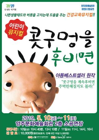 양주시시설관리공단은 오는 10일, 11일에 어린이 건강교육 뮤지컬 “콧구멍을 후비면”을 양주문화예술회관에서 선보인다고 밝혔다.