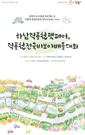 하남문화재단은 오는 11일 덕풍천에서 하남덕풍천펫페어와 덕풍천전국비보이배틀대회를 개최한다. 이번 하남문화재단의 문화재생 프로젝트 Ⅱ ‘덕풍천 환경&문화 연구소’는 작년 신장전통시장에 이어 올해는 덕풍천을 중심으로 진행되며, 문화를 통해 도시를 재생시키고자 추진하는 사업이다. 덕풍천과 인접한 신장1동은 문화체육관광부의 2019 문화적 도시재생 사업에 선정되어 올 한해 문화를 통한 지역 재생 프로그램이 진행될 예정이기도 하다.