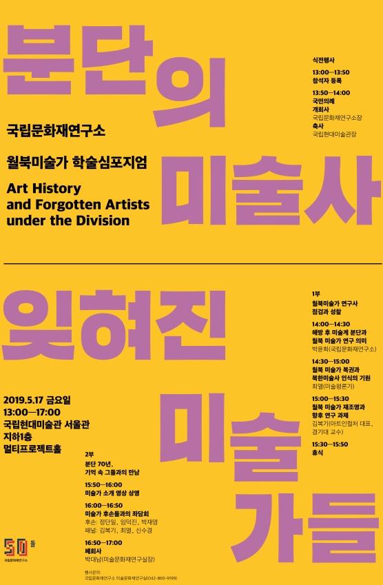 문화재청 국립문화재연구소는 오는 17일 오후 1시, 국립현대미술관 서울관 멀티프로젝트홀에서 ‘분단의 미술사, 잊혀진 미술가들’이라는 주제로 학술심포지엄을 개최한다.